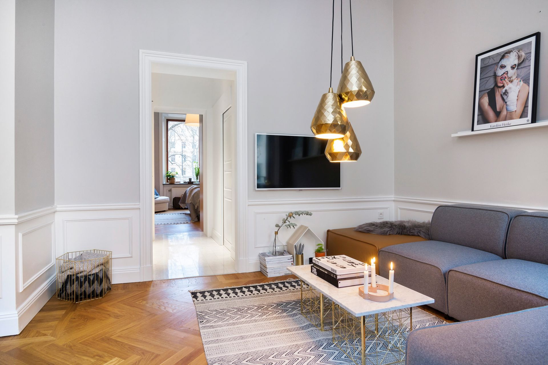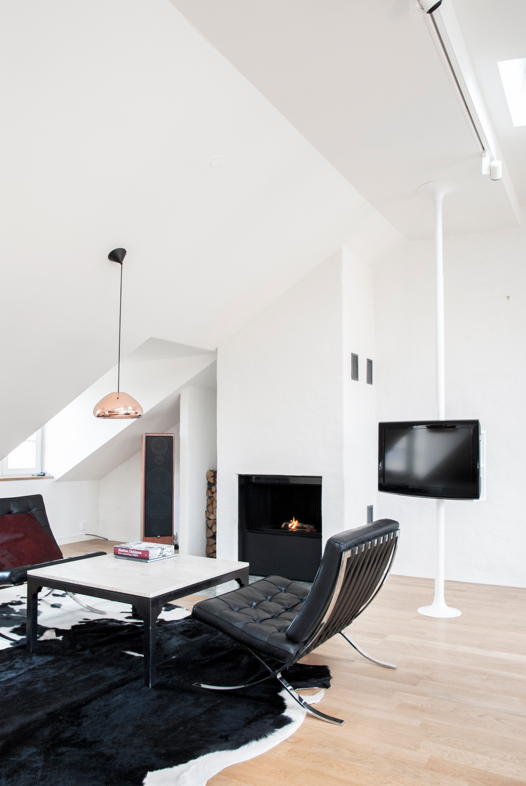 “Vi låter skärmen vara och ta plats och fokuserar istället på att balansera upp med exempelvis tavlor i övrigt i rummet och främst väggen mittemot”, tipsar Jesper Laursen på Scandinavian Homes.