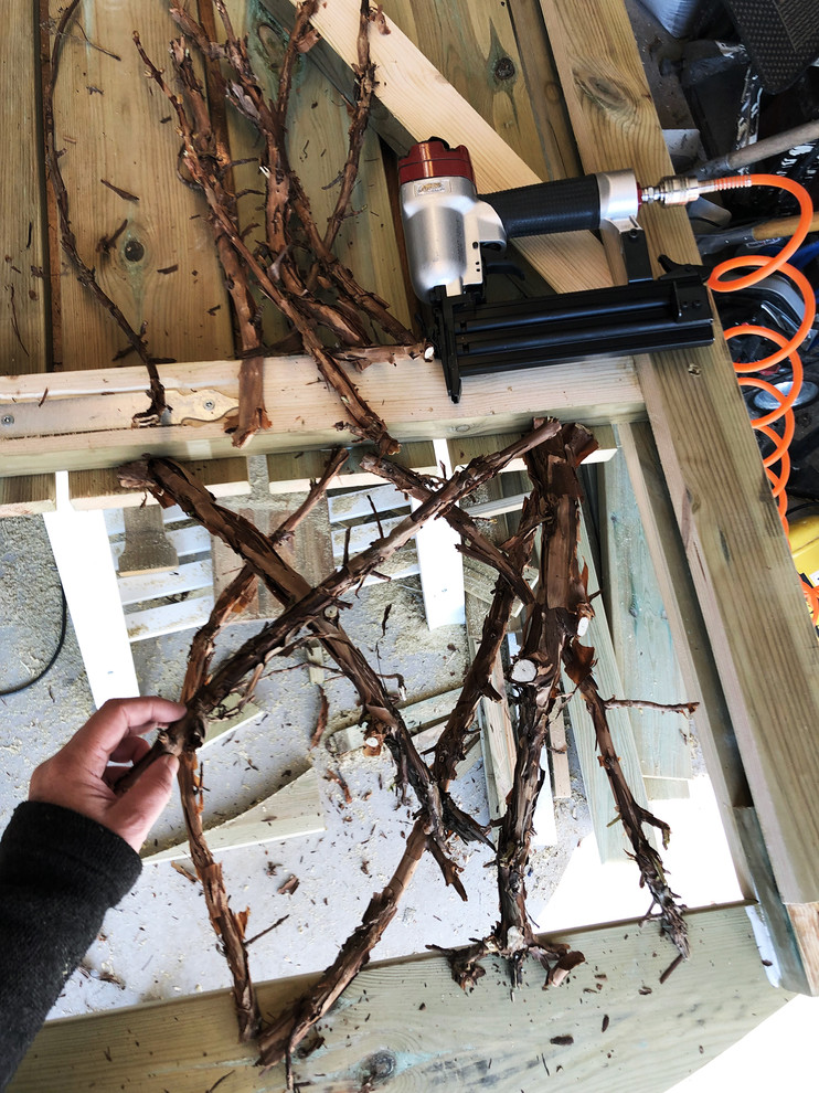 Kvisterne blev fæstnet i rammen af imprægneret træ ved hjælp af en sømpistol.