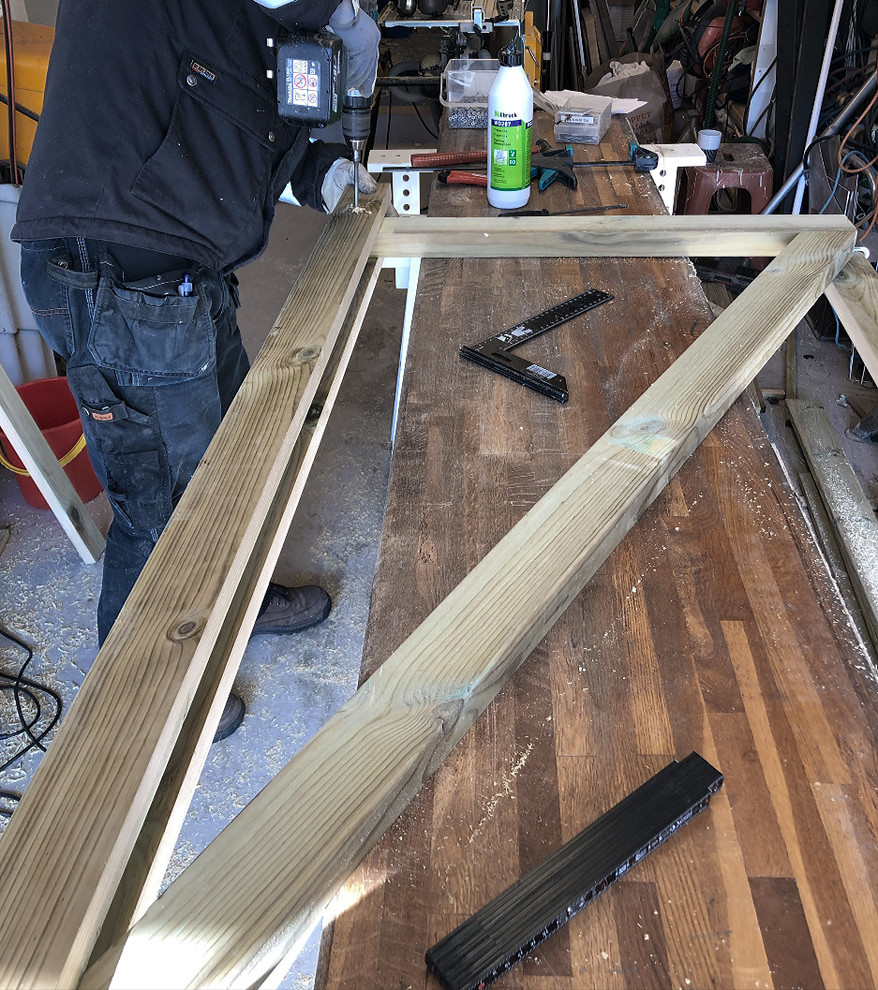 Da rammen til døren skulle sættes sammen, valgte Ingeborg og hendes samlever at arbejde med imprægneret træ.
