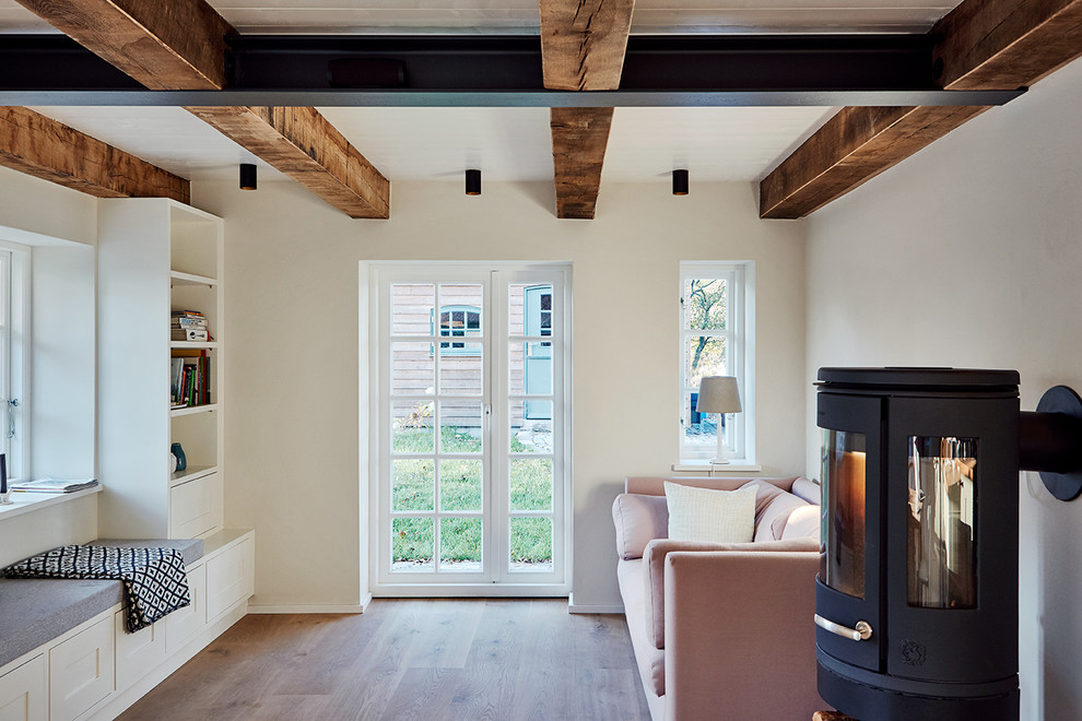 När arbetet startade 2018, hade huset med halmtak stått öde under lång tid. Fukt hade trängt in i väggarna och takbjälkarna var i dåligt skick. “Den gamla stommen höll inte ihop längre, “ säger arkitekt Sven Grotheer.
