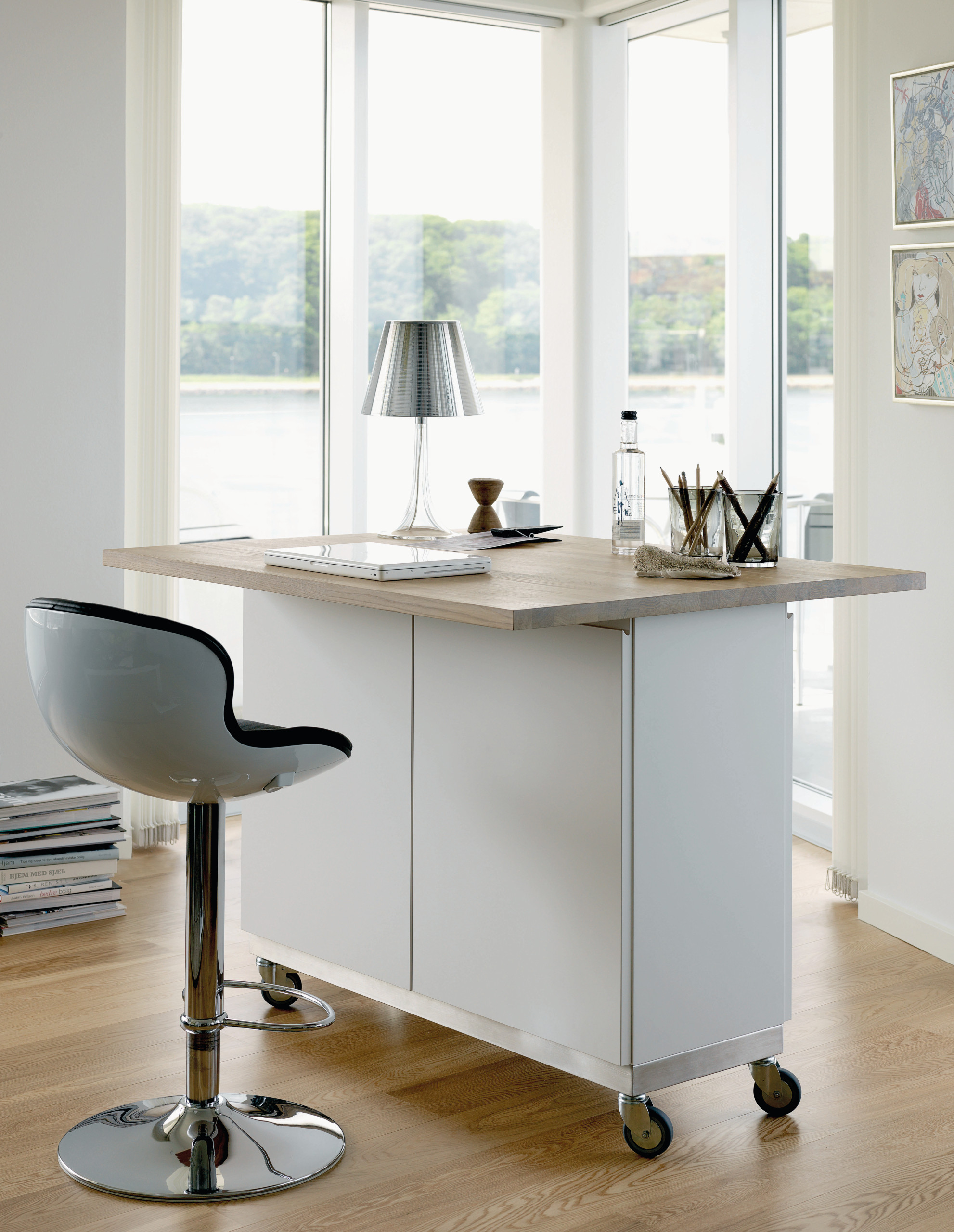 En möbel med hjul kan vara den optimala lösningen i ett litet hem. Att ha ett mobilt bord stående i vardagsrummet gör att du enkelt kan rulla fram det till en bra plats när du behöver jobba, och sen kan rulla undan det till ett hörn vid dagens slut.
